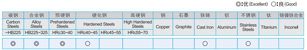 · 設計用于加工碳鋼,工具鋼,鈦合金,不銹鋼等多種用途的剛